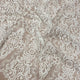 This embellished fabric features 3d laser cut flowers in assorted colours, secured with delicate seed bead clusters over an already beaded tulle. It is light weight with a soft drape and ideal for use in bridal, evening and christening wear.