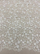 This fine 45cm wide French Chantilly lace trim features ornate elaborately woven flower bouquets together with the characteristic eyelash and scalloped edging. This has a delicately soft drape and handle making it ideal for bridal and formal wear.