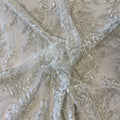 This embellished tulle features clear beading and an embroidered leaf design throughout. It has a soft drape and handle and is ideal for use in bridal, evening.