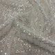 This Beaded tulle features an all over design of scattered seed beads, bugle beads, mirrors and leather sequins. It is ideal for bridal and evening wear.