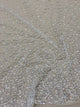 This embroidered tulle has a floral design featuring ferns and poppies picked out with pearlescent sequins and seed beads and is more heavily patterned at one edge. It has a soft handle and is ideal for Bridal and evening wear.