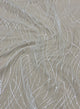 This embroidery features a symmetrical rococo design with clear sequins, making it glisten subtly. It has a soft handle and is ideal for Bridal and evening wear.