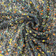 This embellished tulle features a heavily pearled and beaded edge design around 3D chiffon flowers. It has a mid weight drape and is ideal for use in bridal, evening and christening wear.