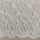This tulle features linear strings of clear and silver beads dotted here and there with tiny tufts of ostrich feather. It is lightweight with a soft drape and ideal for use in bridal, and evening wear.