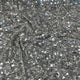This heavily embellished georgette features different sized sequins running parallel to the selvedge. It has a soft and heavy drape and is ideal for use in Bridal, evening and Christening wear,