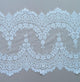 This hand beaded fine lace trim features ornate elaborately woven floral motifs, together with double scalloped edges and eyelash details. This has a delicately soft drape and handle making it ideal for bridal and formal wear.