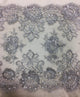 This delicate lace trim features a double edge scallop and a one way stretch. It has a very soft handle and is ideal for use in lingerie, evening or formal wear.